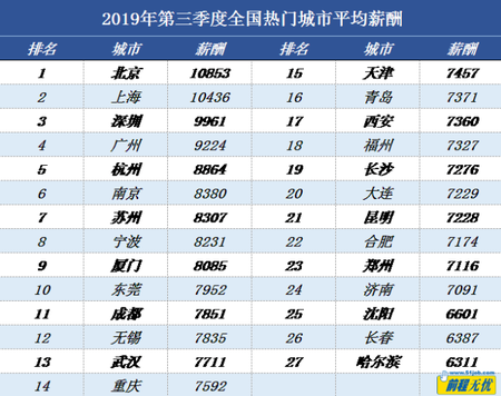 據(jù)前程無憂人力資源調(diào)研中心數(shù)據(jù)顯示,2019年第三季度27個熱門城市當(dāng)中,有13個城市薪酬較第二季度略有下降,其中東莞薪酬降幅相對明顯,東莞 “出口依存度”較高,受貿(mào)易戰(zhàn)影響,工業(yè)生產(chǎn)有所回落,進出口增速放緩,經(jīng)濟受到一定影響。